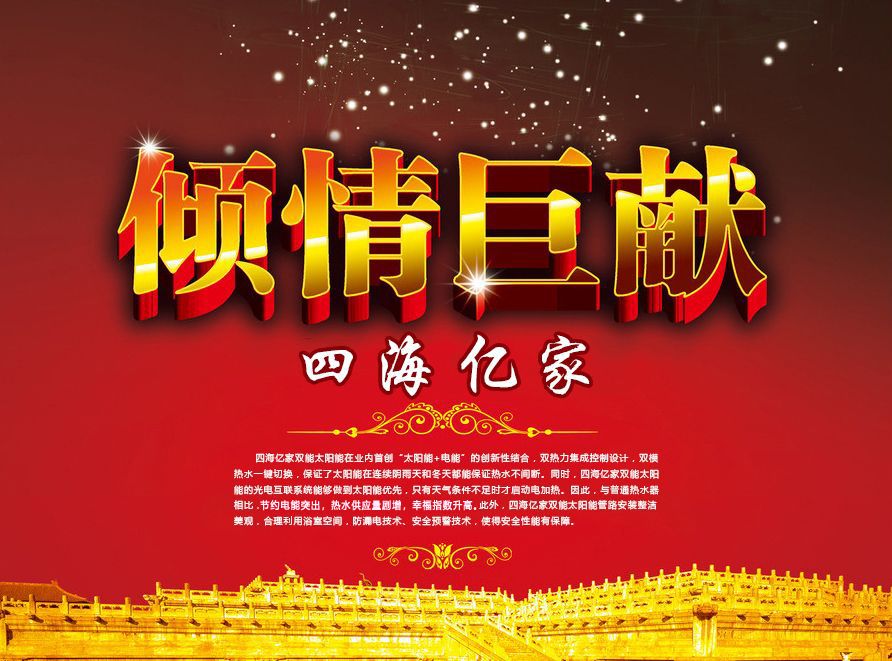 | 上一条:太阳能热水器行业发展峰回路转 四海亿家新能源产品崭露头角 | 下一条:【重阳节】 |